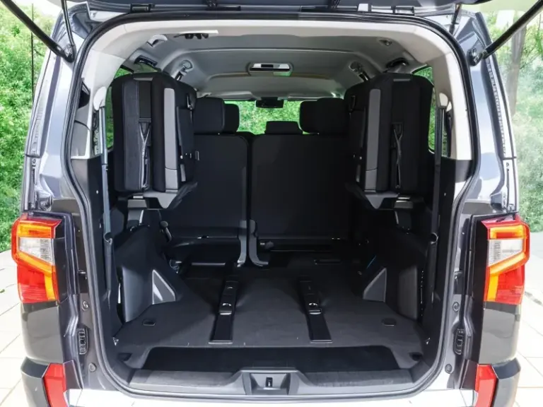實際可以坐八人,但就會壓縮後車廂行李空間。如果後排椅子收起來,坐到 5 人都還算舒適。我們繞了北九州玩了一圈行李箱從原本四大箱,最後變成了 4 個 29 寸行李箱、1 個登機箱、1 個 3Coins 89L 裝滿的購物袋、1 個 3 Coins 中號寬提袋、2 個後背包,後車廂完全裝的下,二位媽媽們也都坐得很舒適。