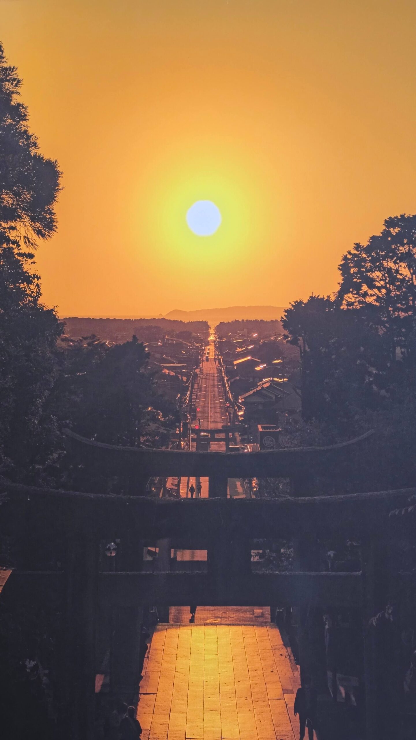 - 每年 2 月和 10 月下旬,夕陽會筆直的照射在通往海邊的參道上,又稱「光之道」