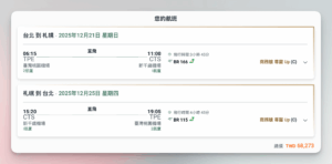 如果用哩程兌換只要 50,000 哩 + 稅金約 NT$3,000。