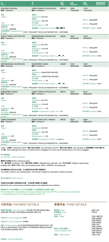 而且就算你用哩程換票,仍然要支付各國機場稅、燃油附加費與規費,就像是廉價航空推出促銷的 0 元機票,機票零元但你還是需要付稅金,這些都是真實的成本,不該被忽略。